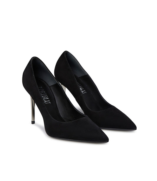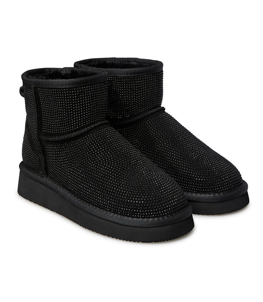 Scarponcini in camoscio nero con eco pelliccia interna e zeppa platform