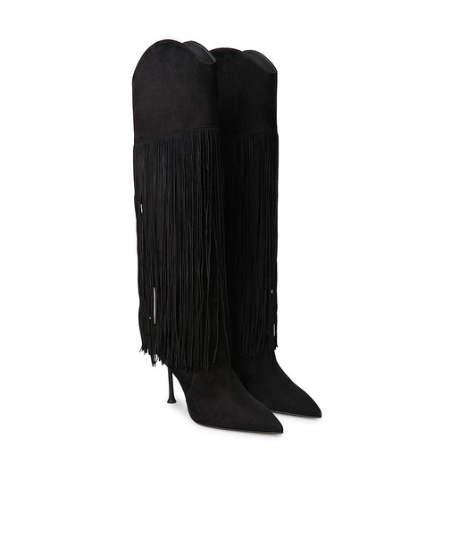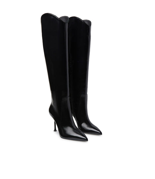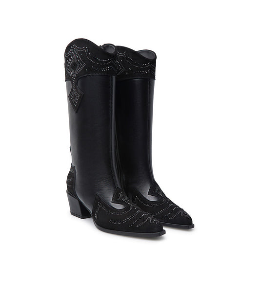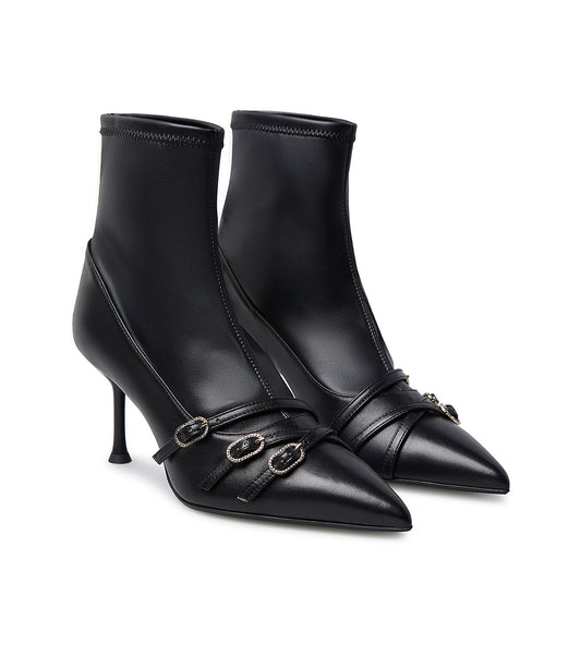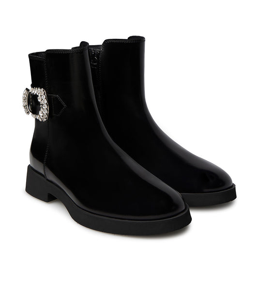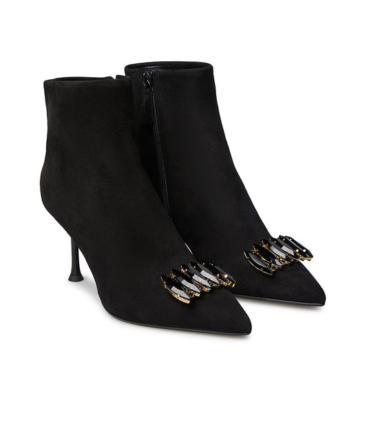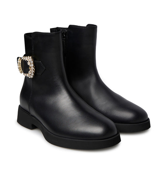 Stivaletto in vitello spazzolato nero con fibbia gioiello