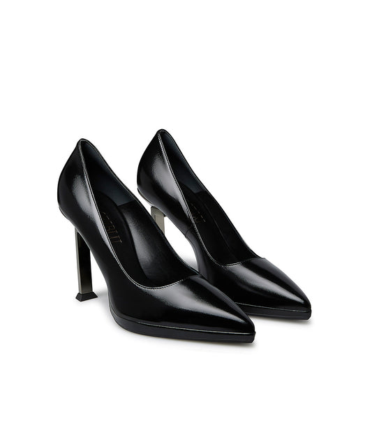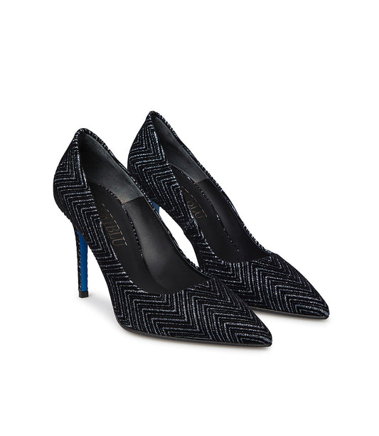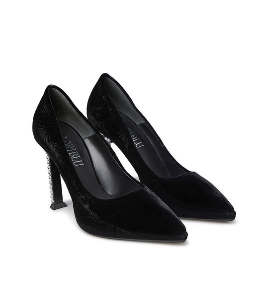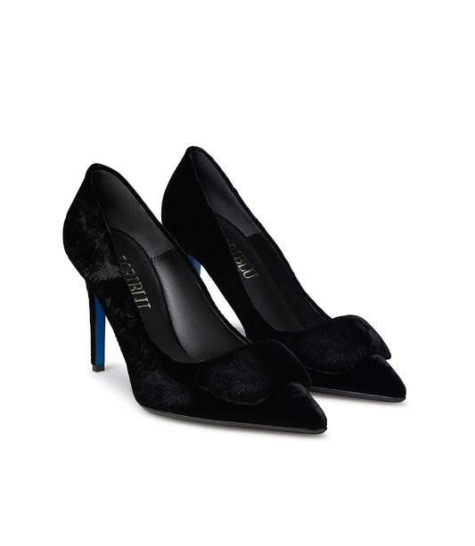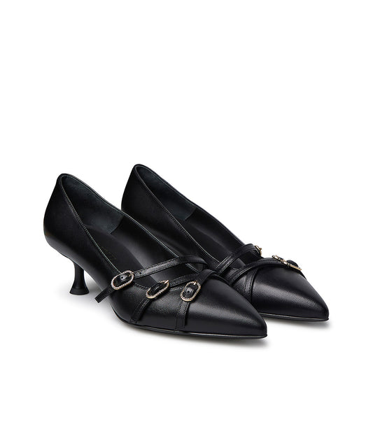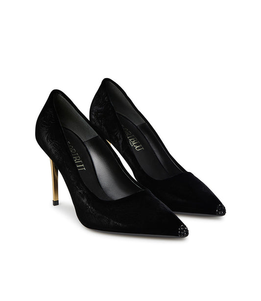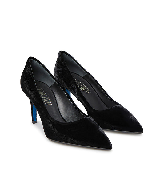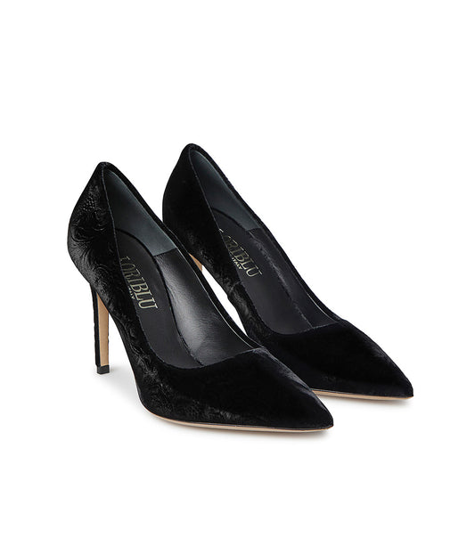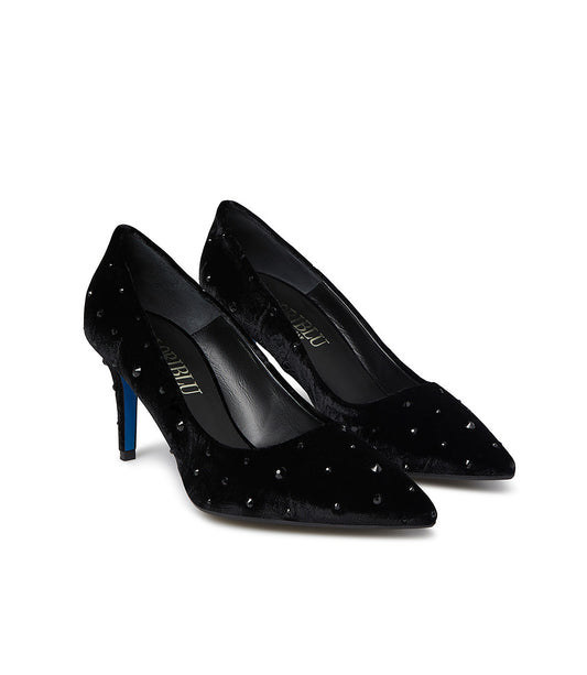 Décolleté in velluto nero con cinturino e fibbia gioiello