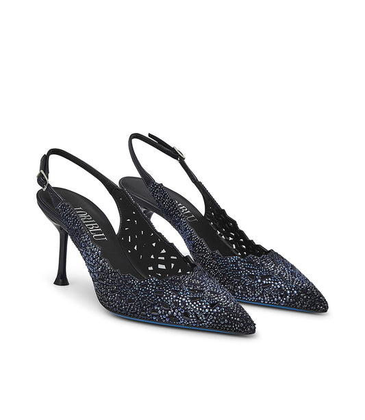Slingback in camoscio blu con cristalli