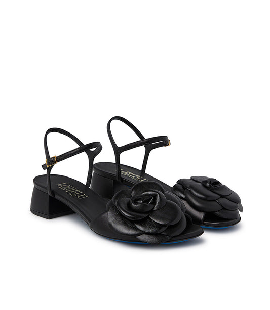 Sandalo in nappa nera con fiore