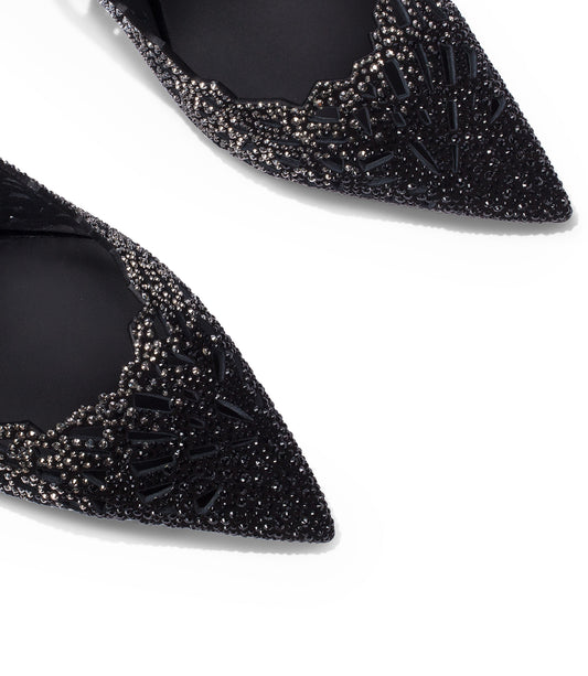 Slingback in camoscio nero laser-cut con cristalli decorativi