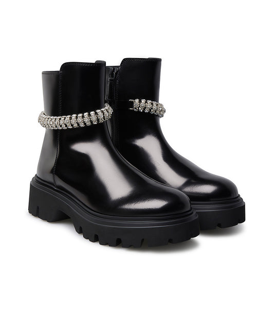 Anfibio vitello spazzolato nero con cinturino gioiello