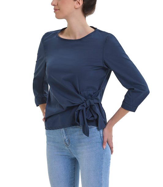 Blusa color blu con fiocco laterale