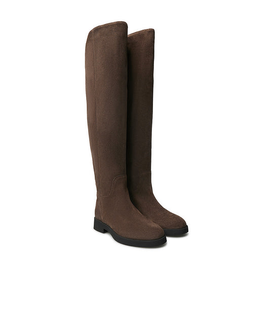 Stivale cuissardes in pelle scamosciata moro