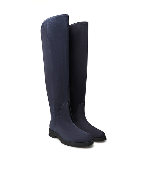 Stivale cuissardes in pelle scamosciata blu
