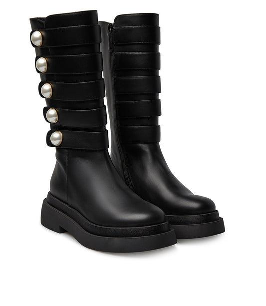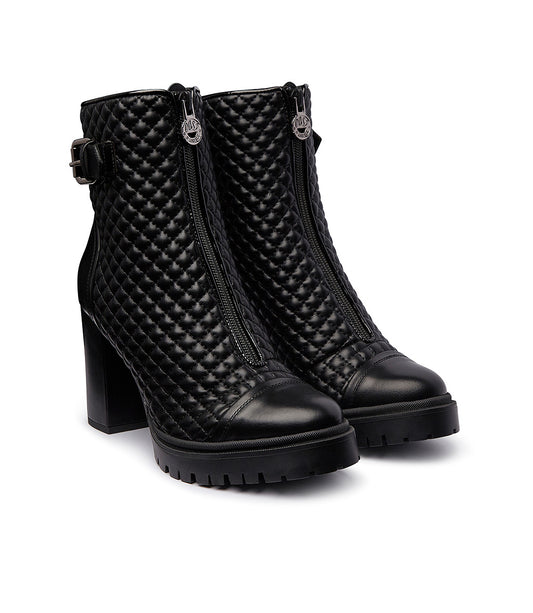 Stivaletti imbottiti in pelle nera con inserti trapuntati