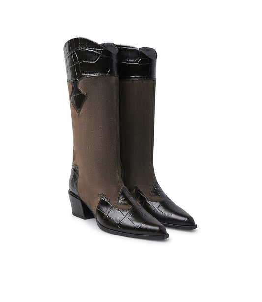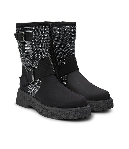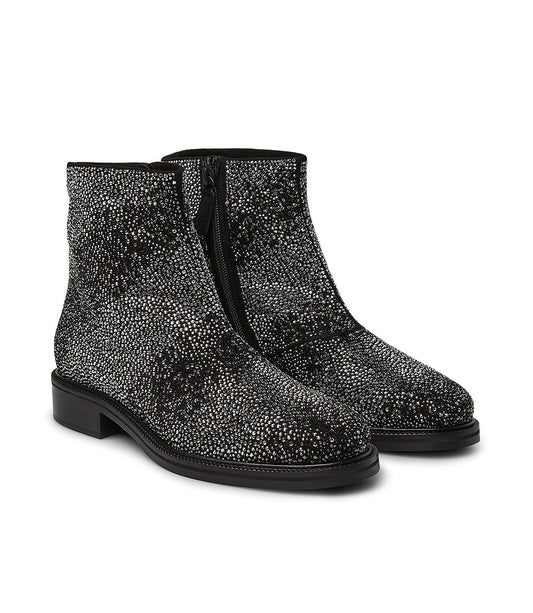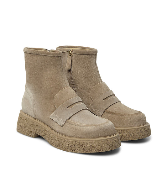 Stivaletti in camoscio nude laser-cut con cristalli decorativi