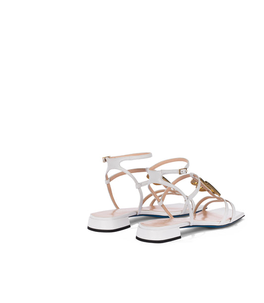 Sandali flat in nappa bianca con placca-logo