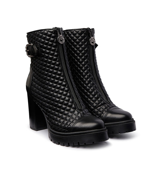 Stivaletti in pelle nera con inserti trapuntati