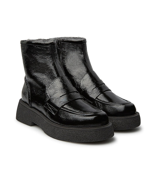 Stivaletti in vernice nera foderati in shearling
