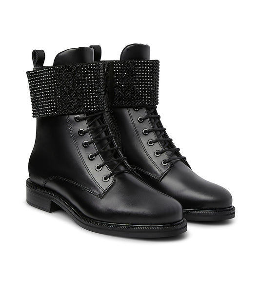 Stivaletti in pelle nera con fascia in strass