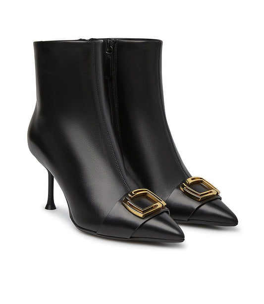 Stivaletti in nappa nera con fibbia gioiello