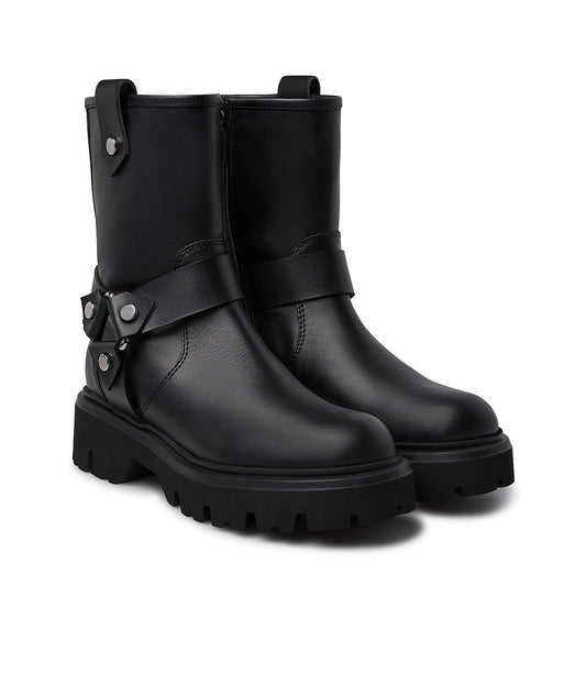 Stivaletti in pelle nera con placca-logo