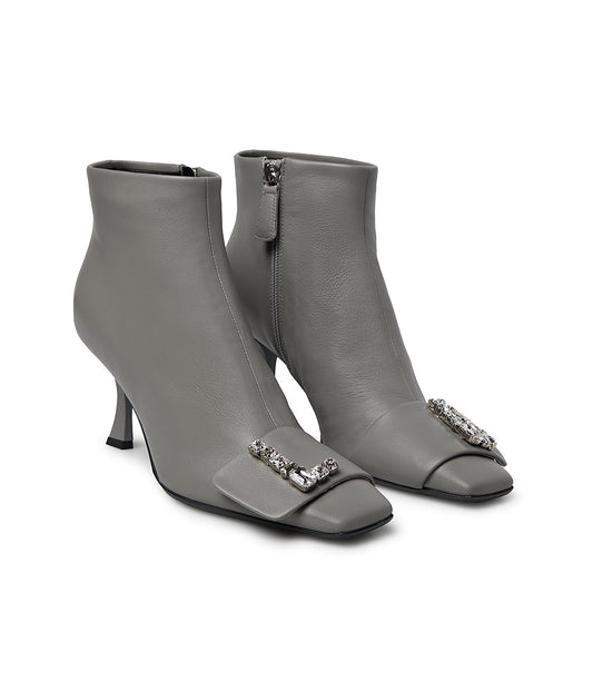 Stivaletto in nappa grigio con Logo Signature cristalli