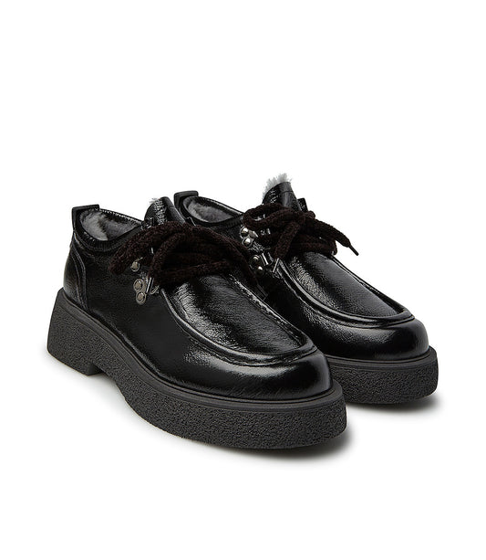 Stringate in vernice nera foderate in shearling