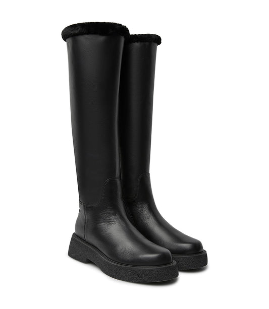 Stivali in pelle e shearling nero