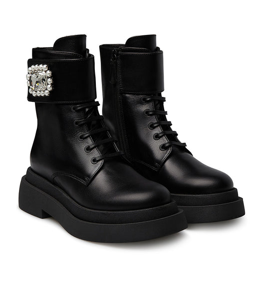 Stivaletto in vitello nero con fibbia-gioiello