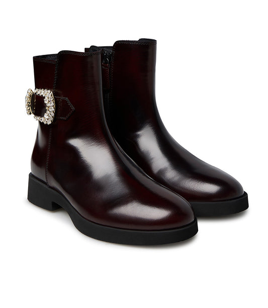 Stivaletto in vitello spazzolato bordeaux con fibbia gioiello