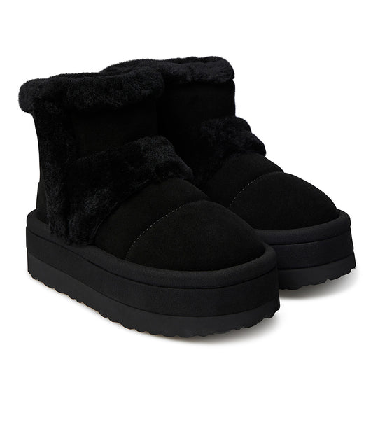 Scarponcini in camoscio nero con eco pelliccia interna e zeppa platform