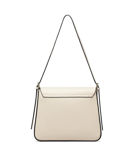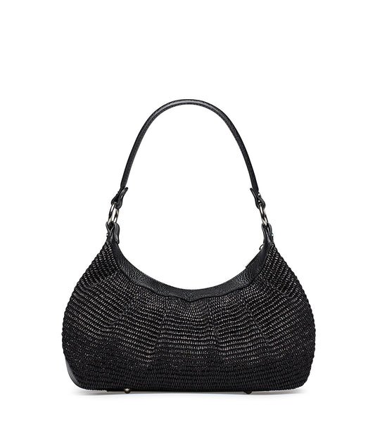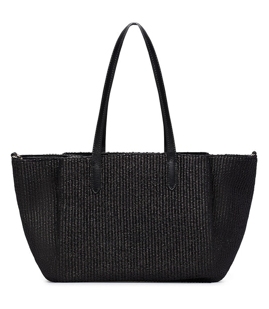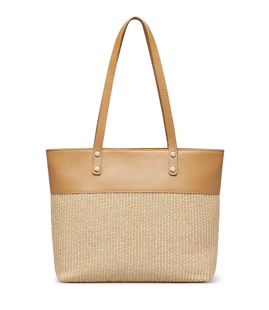 Borsa shopper a spalla in rafia naturale e pelle cuoio