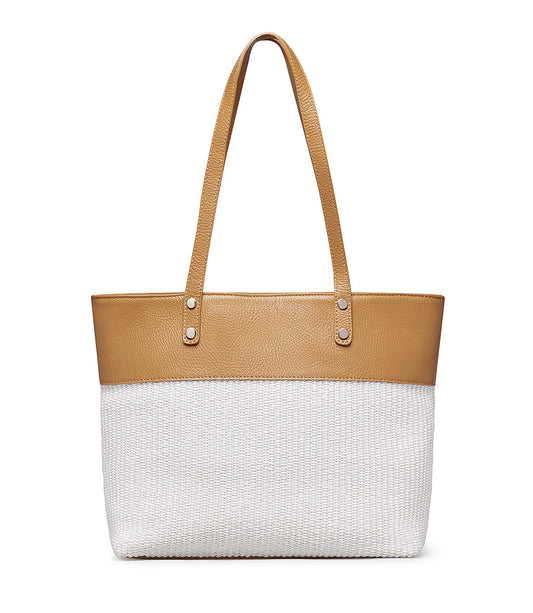 Borsa shopper in pelle cuoio e rafia colore naturale