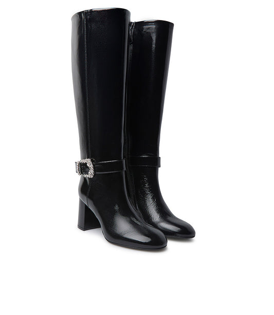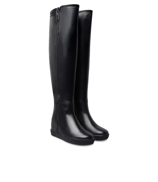 Stivaletti imbottiti in pelle nera con inserti trapuntati