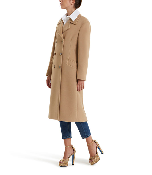 Cappotto colore rosa pesca doppiopetto con scollo rever