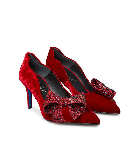 Décolleté in velluto rosso rubino con cinturino gioiello