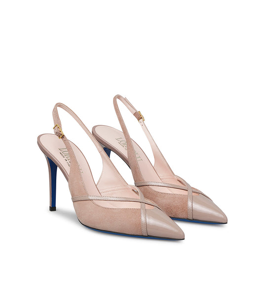 Décolleté in camoscio e nappa cipria