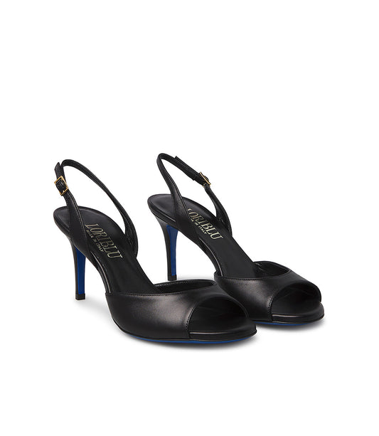 Sandalo in nappa nera con cinturino al tallone