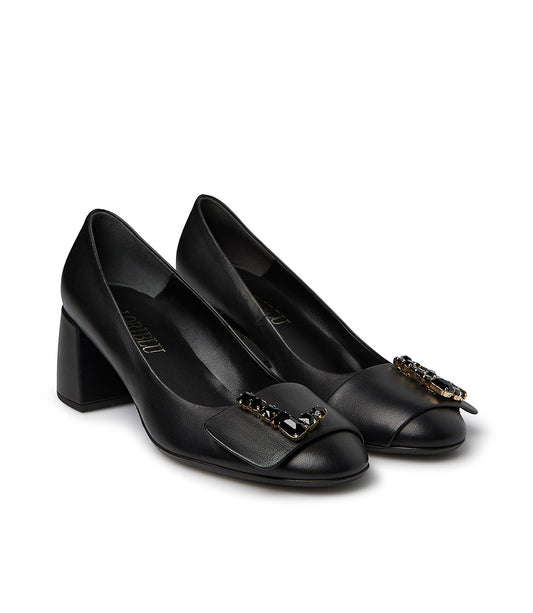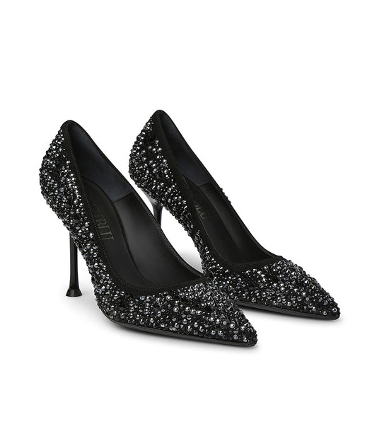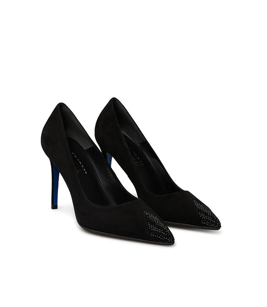 Décolleté Mary Jane in camoscio nero con cristalli all-over