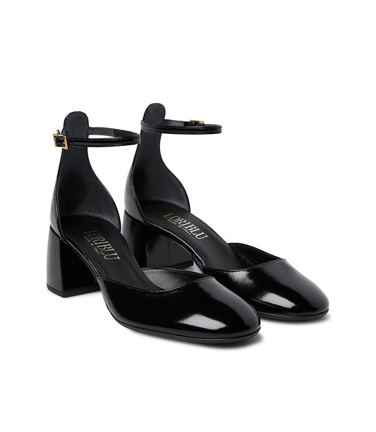 Décolleté Mary Jane in pelle lucida nera con cinturino