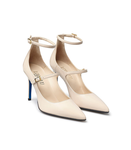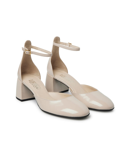 Décolleté Mary Jane in pelle lucida sabbia con cinturino