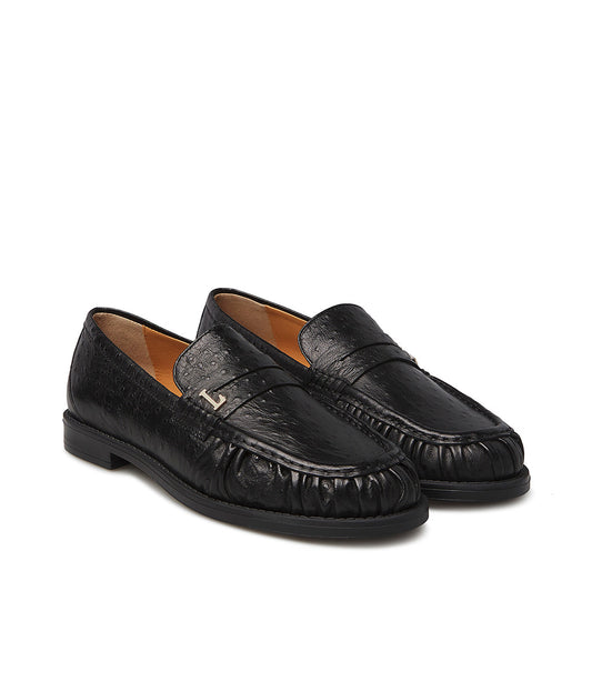 Mocassino in pelle stampa struzzo nero