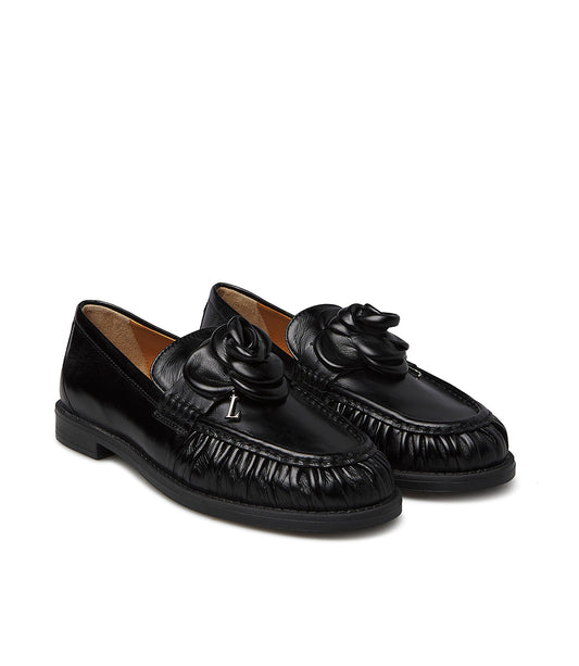 Mocassino in nappa nero con fiore