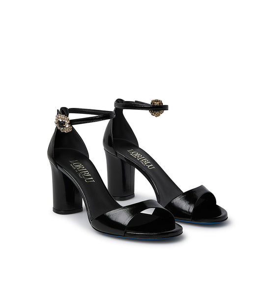 sandalo in vernice nera laser-cut