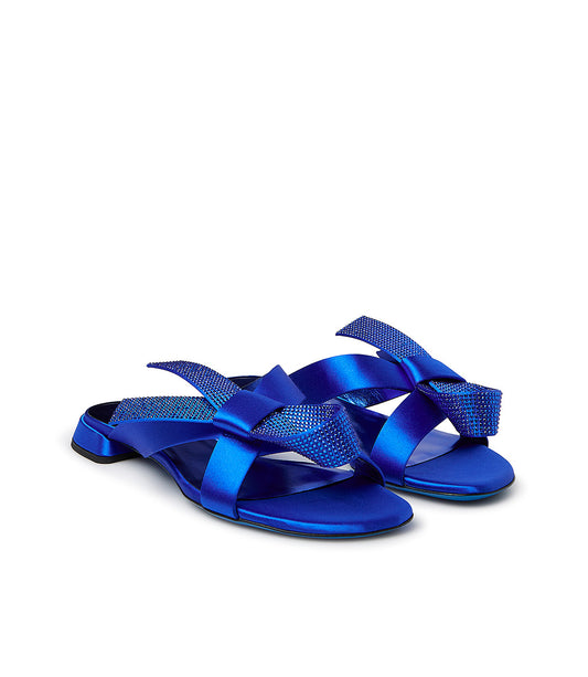 Sandali basso in raso bluette con fiocco