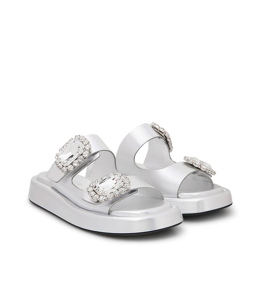 Mules in pelle argento con spilla gioiello
