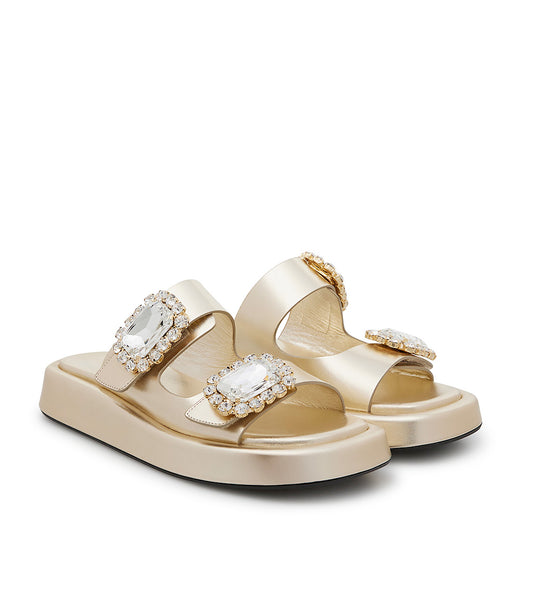 Mules in pelle oro con fibbie gioiello