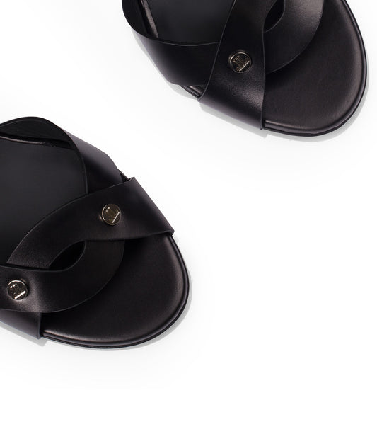 Sandalo basso in pelle lucida nera con cinturini