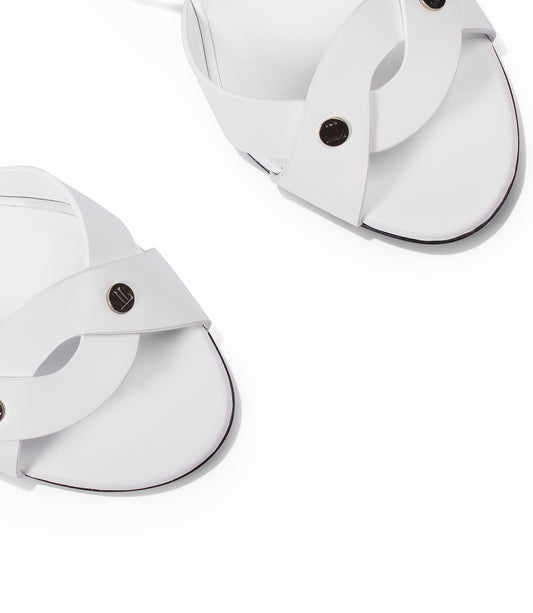 Sandali in pelle bianca con placche-logo