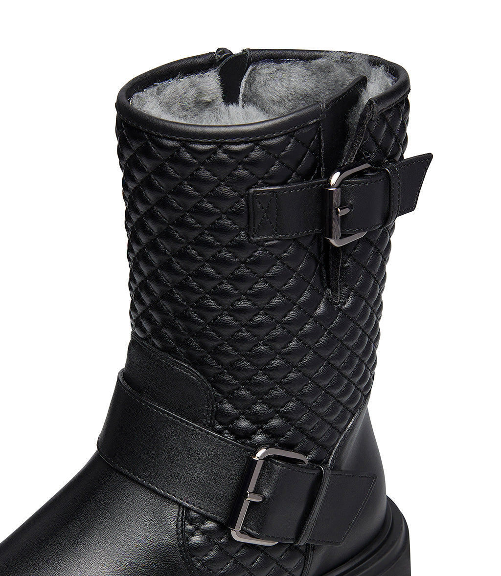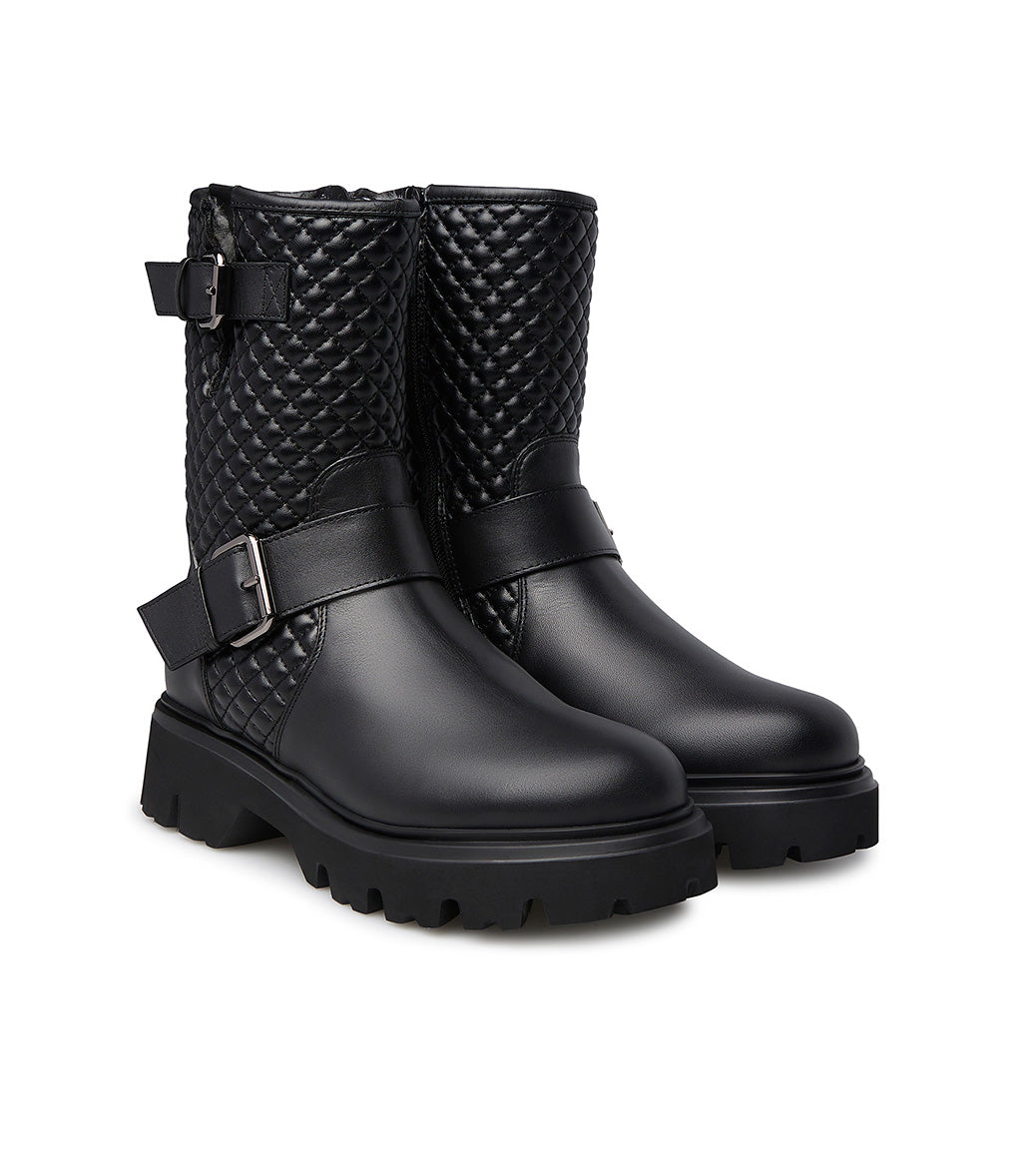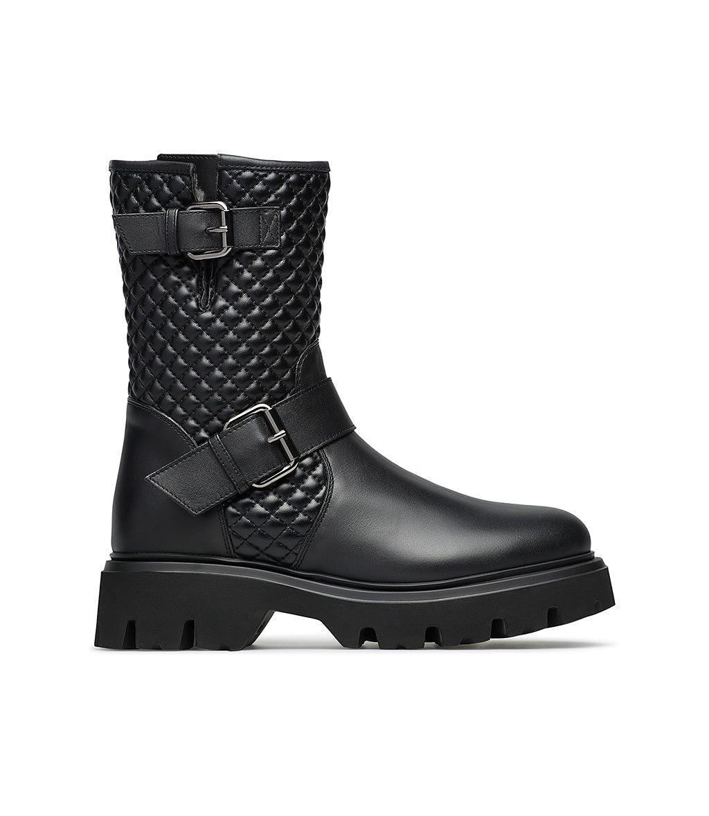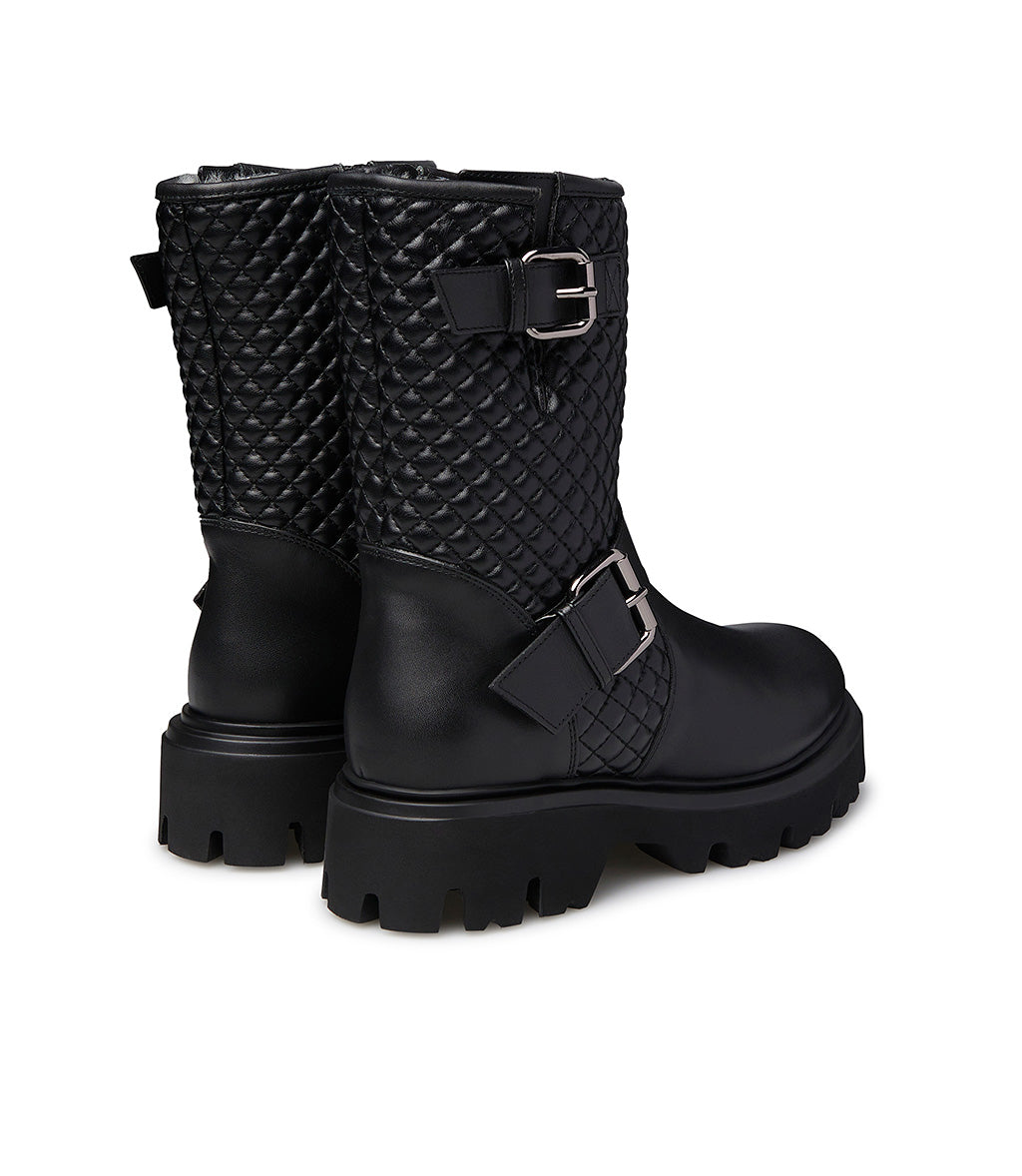 Anfibi in vitello nero con motivo matelassé