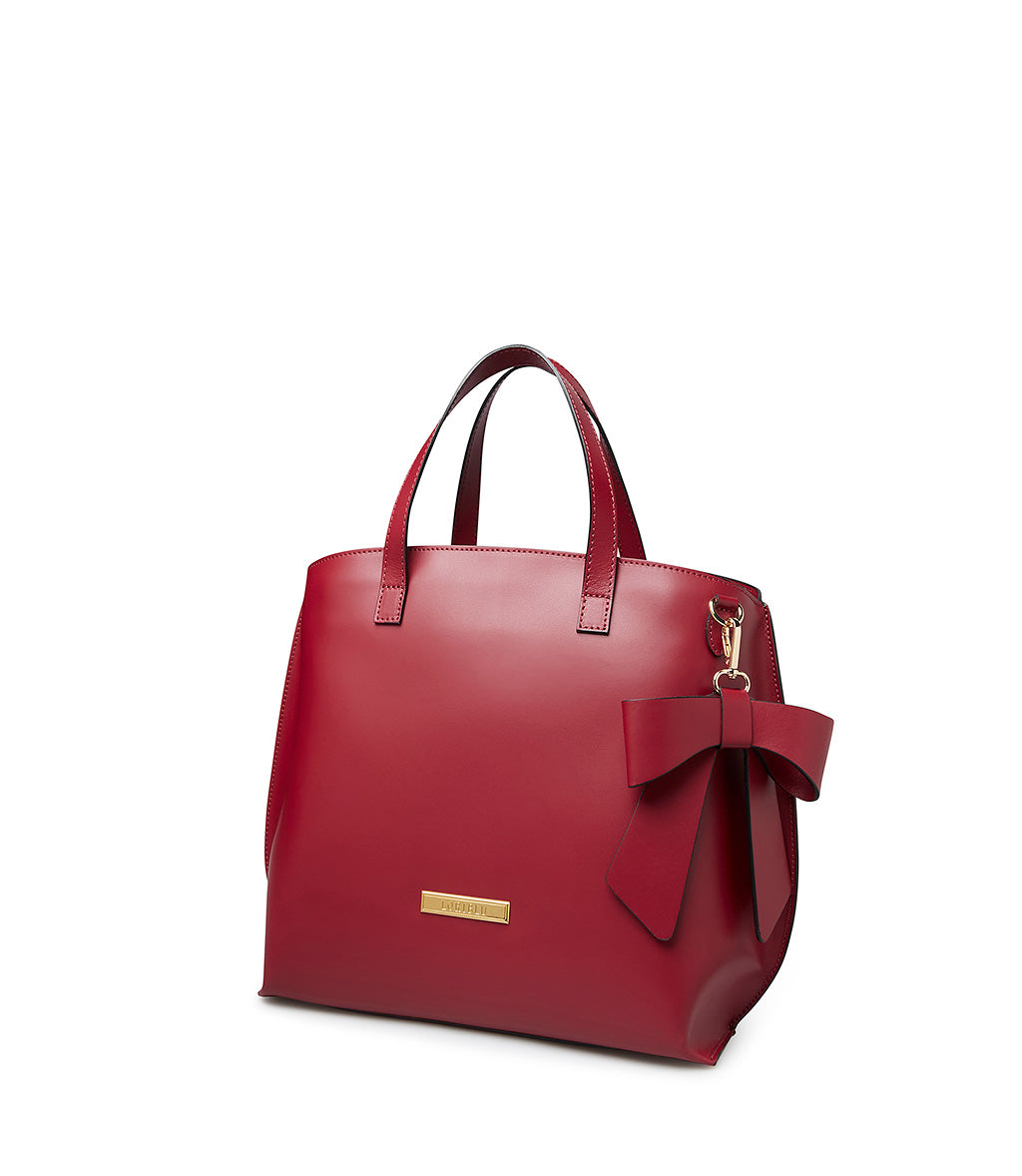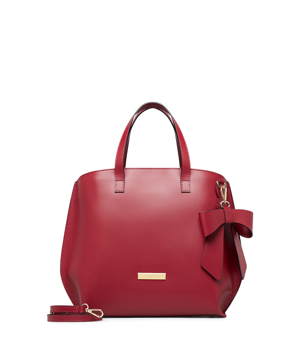 Borsa a mano con fiocco in pelle rosso