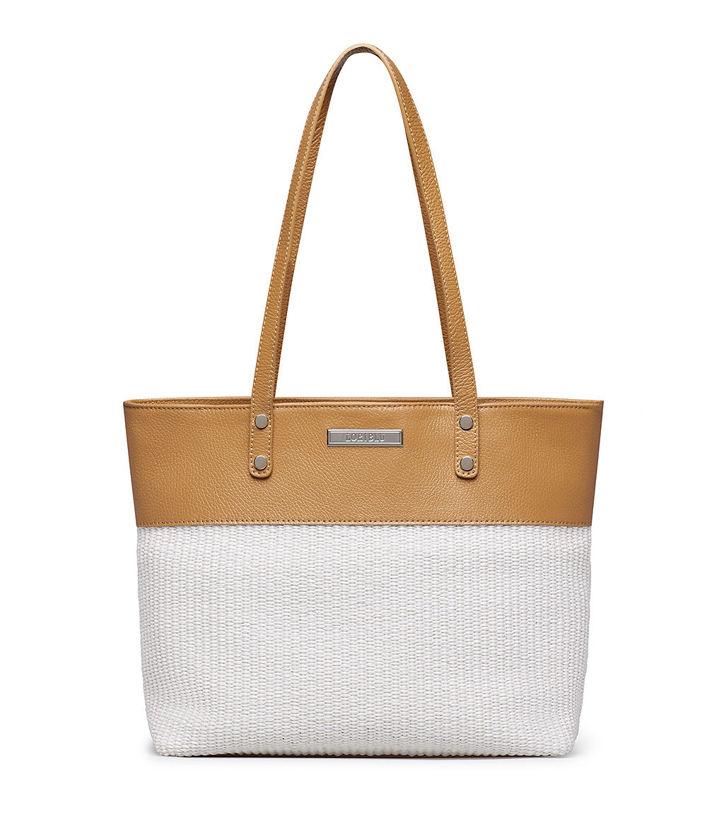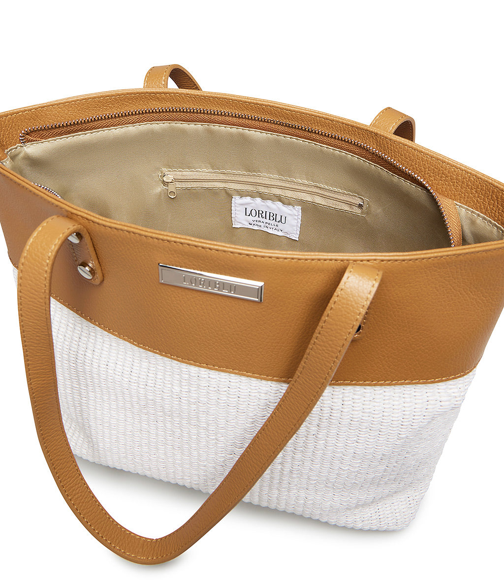 Borsa shopper in pelle cuoio e rafia sabbia