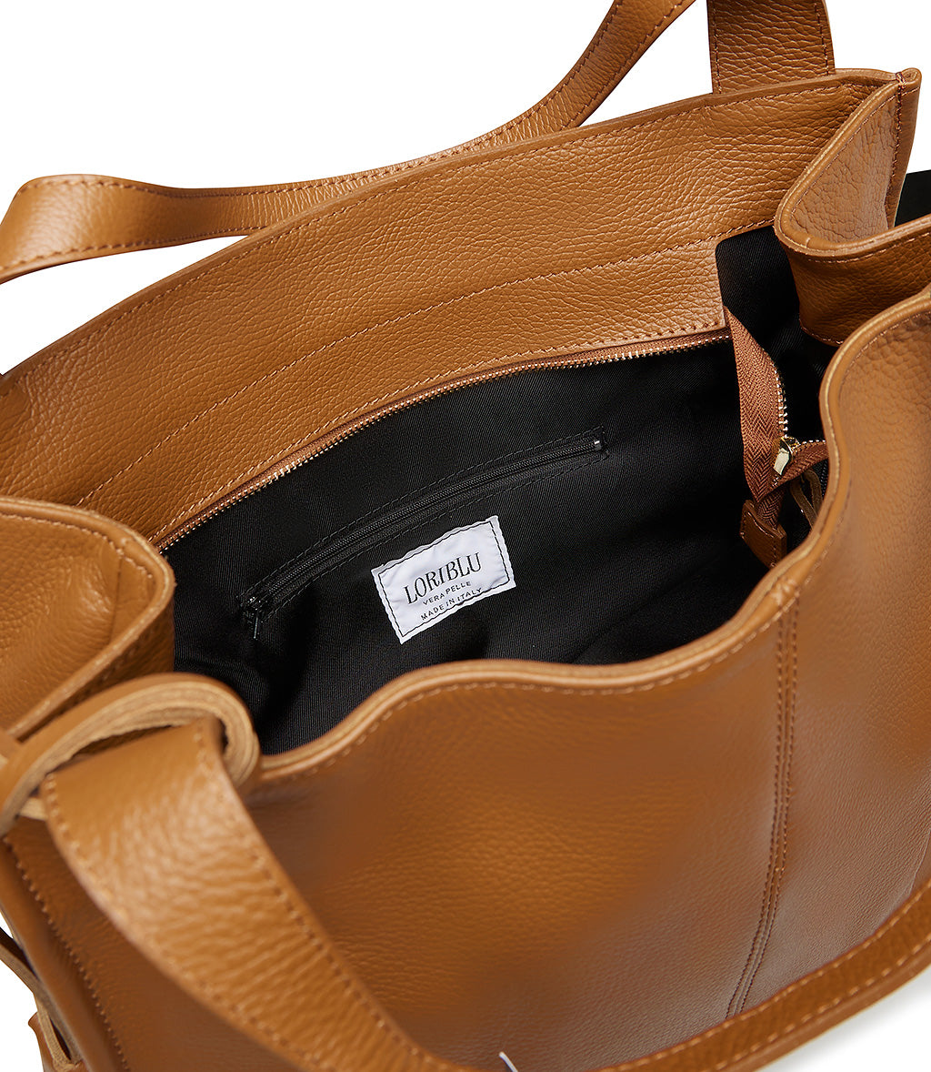 Borsa shopping in pelle color cuoio