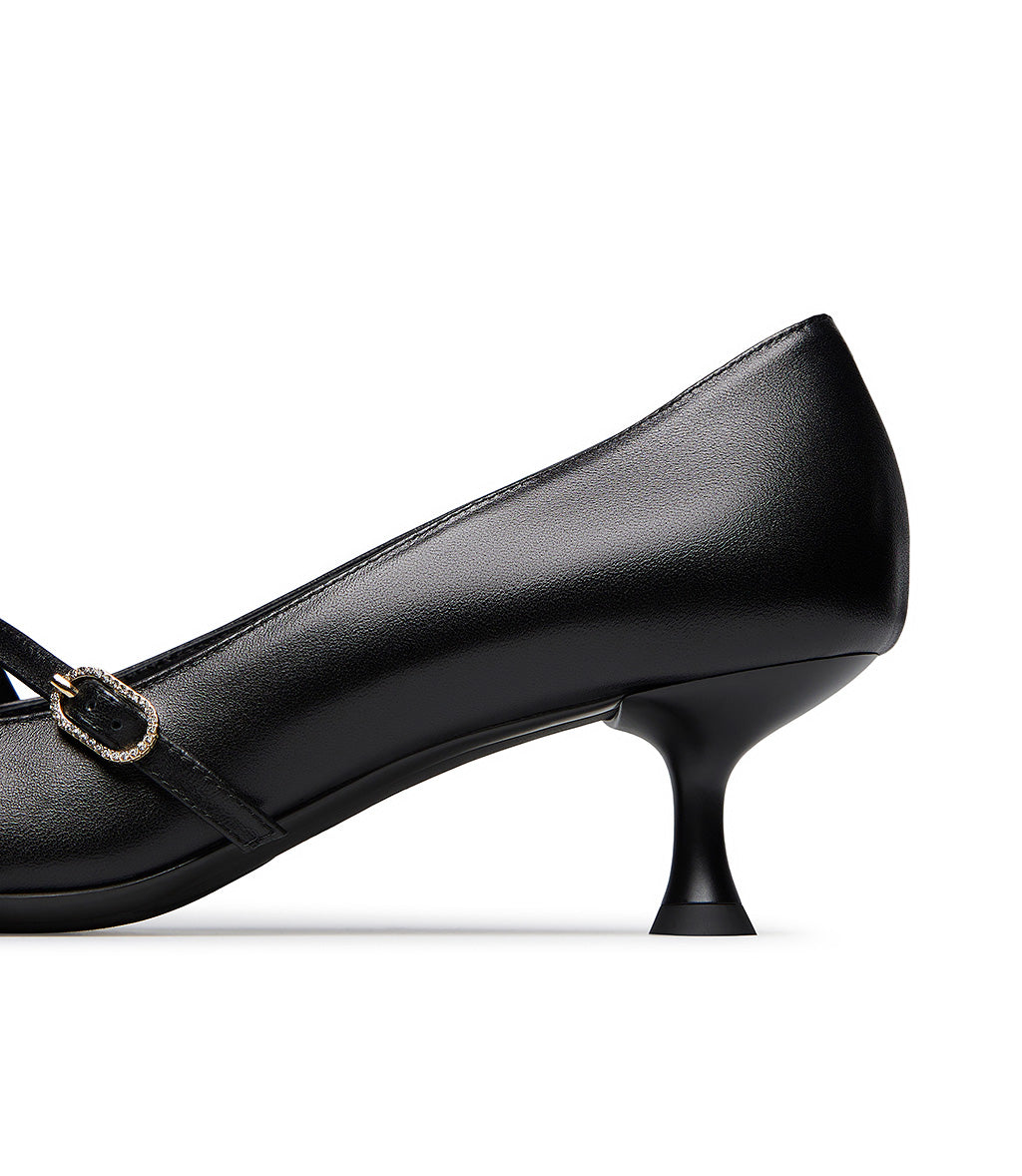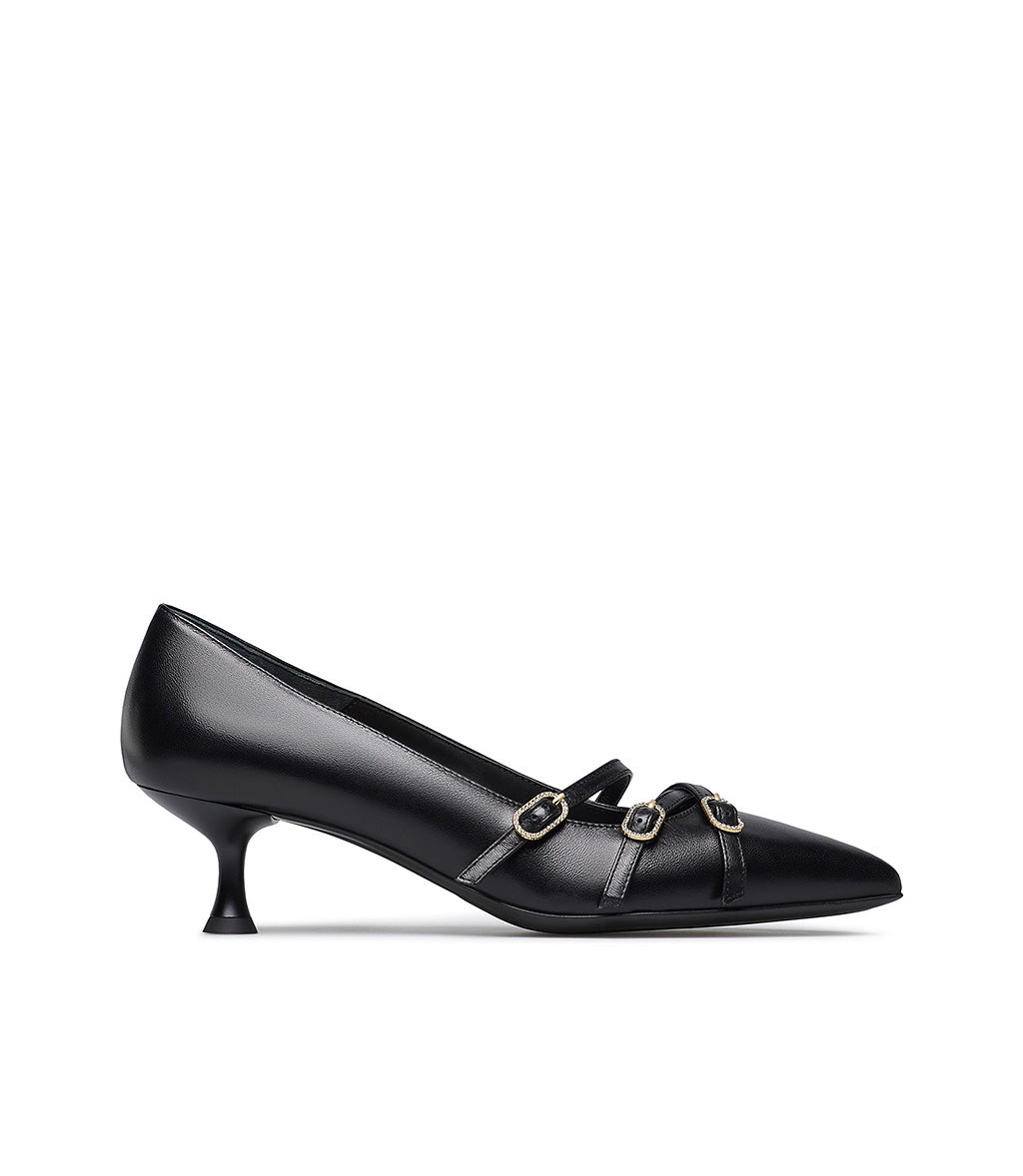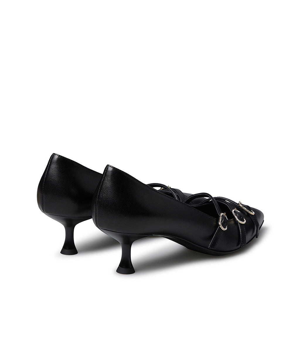 Décolleté in nappa nera con cinturini