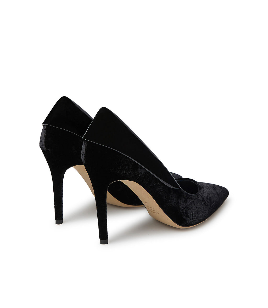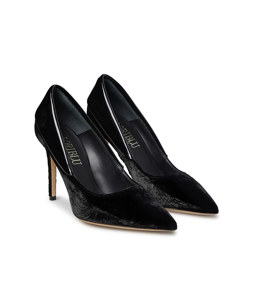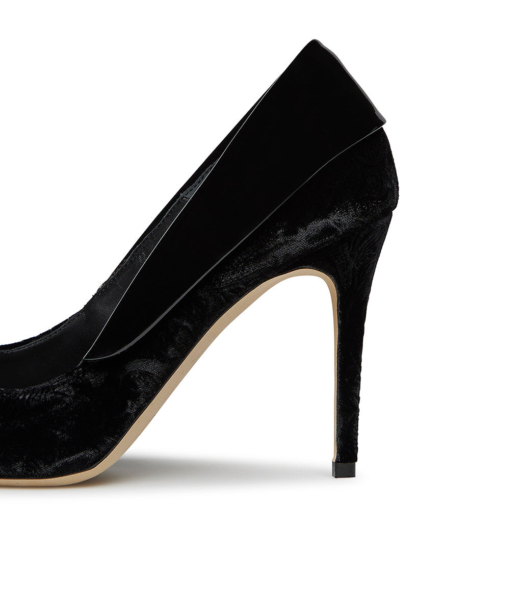 Décolléte in velluto damascato e vernice nero