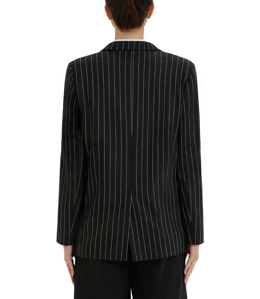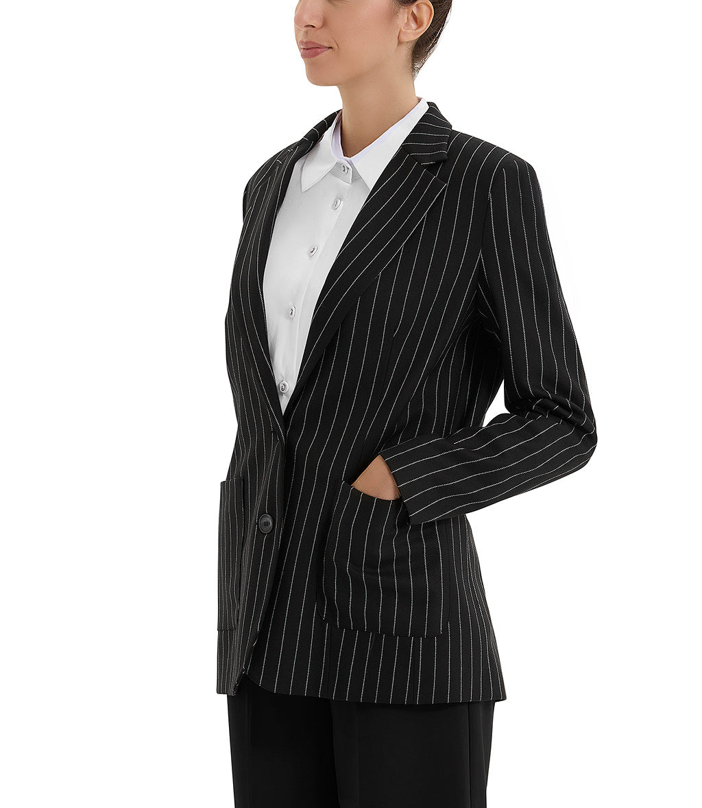 Giacca nera gessata in poliestere