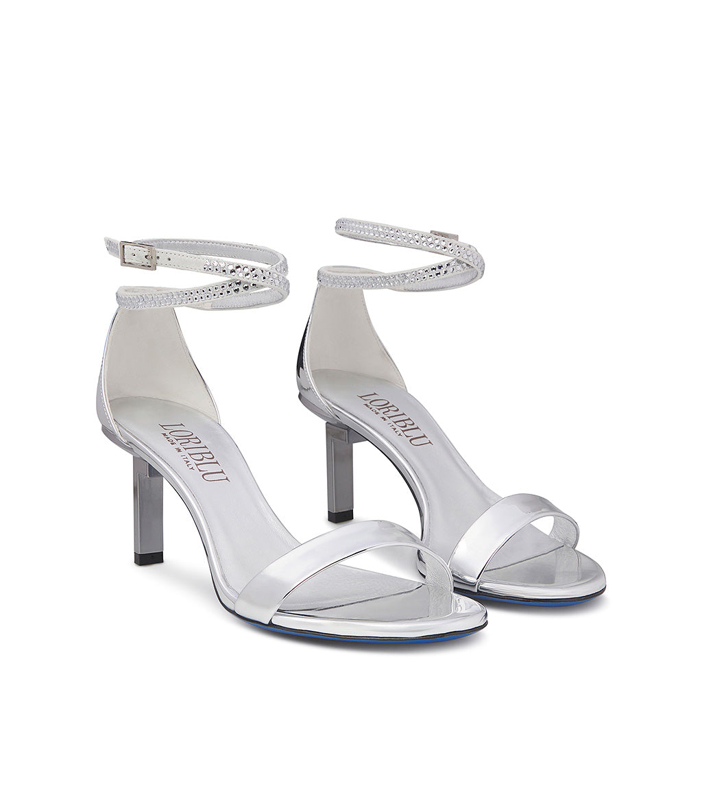 Sandalo in vernice argento